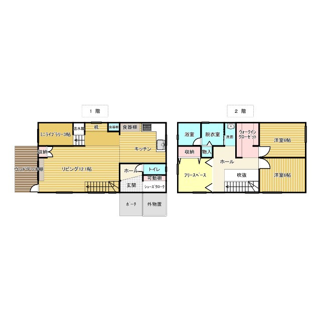 1階に3帖の書斎、2階に4.5帖のフリースペースあり。